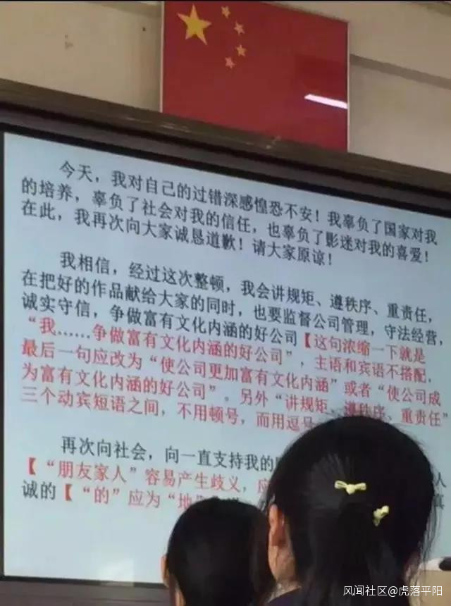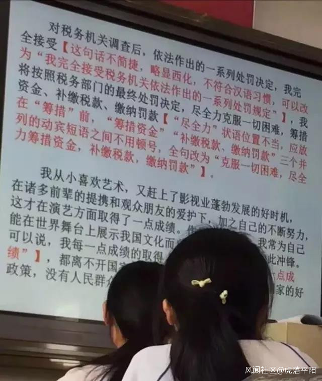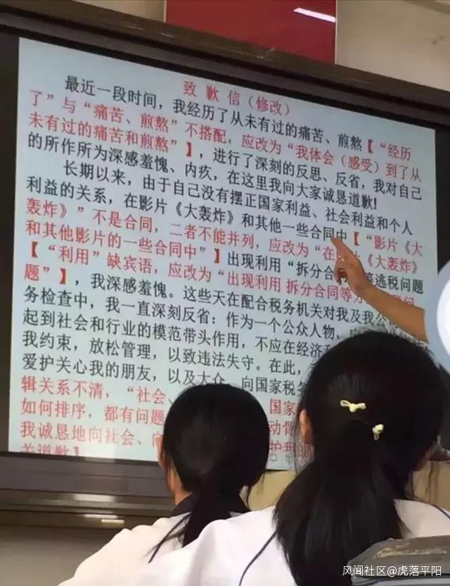 原來杭二中的一個語文老師正好在給高三學生複習基礎知識,對標點、語病等比較敏感,一眼就看出了范冰冰因偷税漏税所寫的致歉信中的錯誤,決定,把這封信作為一道改錯題帶到語文課堂中,讓學生們來挑挑骨頭——