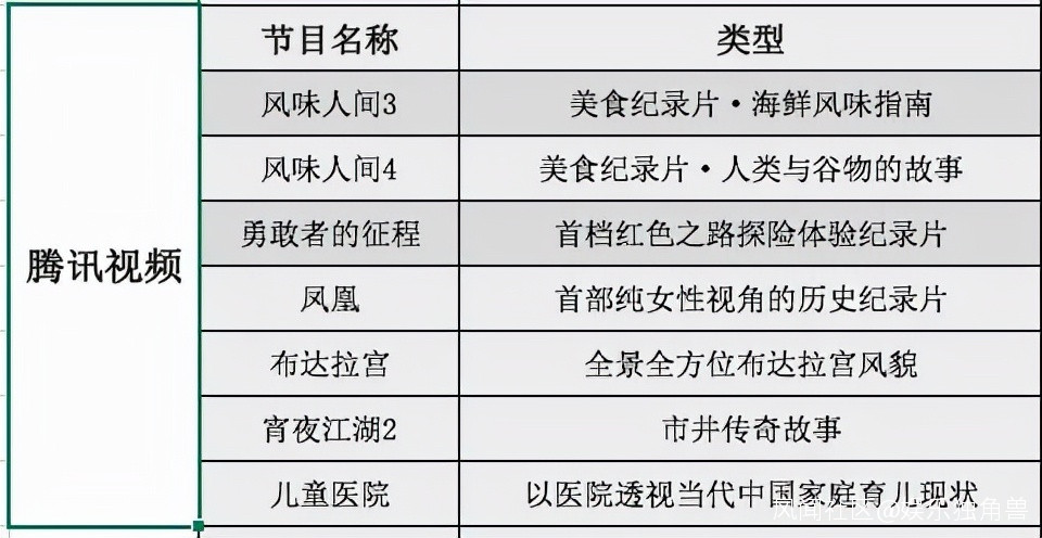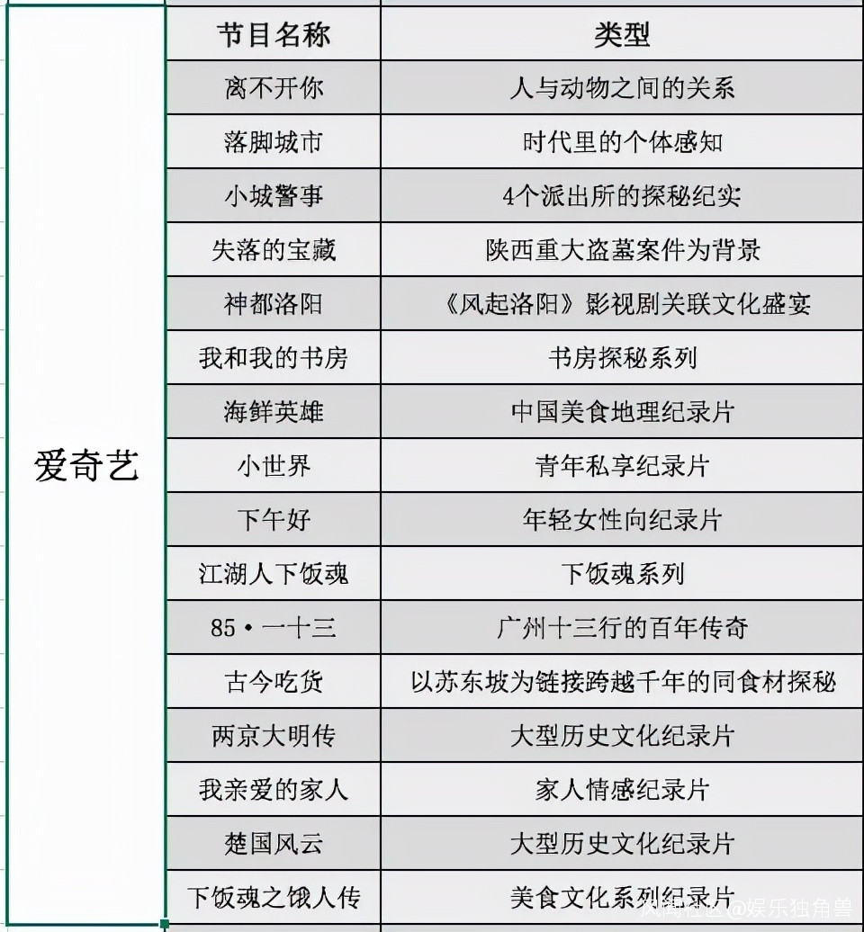雖然還沒有催生最頭部的“爆款”作品,但市場正在肉眼可見地熱鬧起來。而值得注意的是,剛剛過去的兩個月,市場同樣收到了優愛騰和B站共計55部的紀錄片片單,為當下乃至未來的市場佈局指明瞭方向。