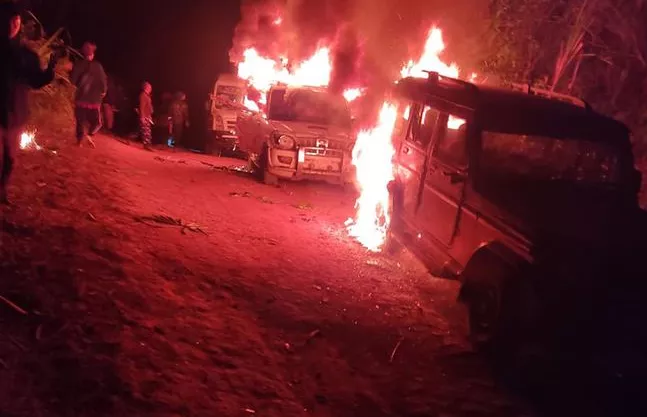 ▲被激怒的民眾開始焚燒印度軍警的車輛