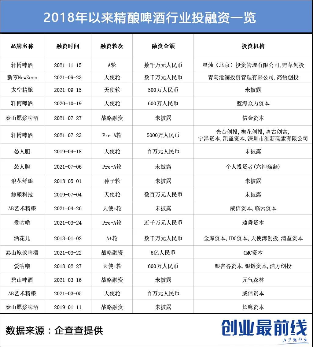 企查查數據顯示,自2018年以來,精釀啤酒共發生18次融資事件。其中,僅2021年就已經發生11起。