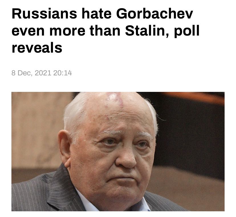 看到RT昨天的一篇報道,一份民調顯示,俄羅斯人討厭戈爾巴喬夫,超過了討厭斯大林。