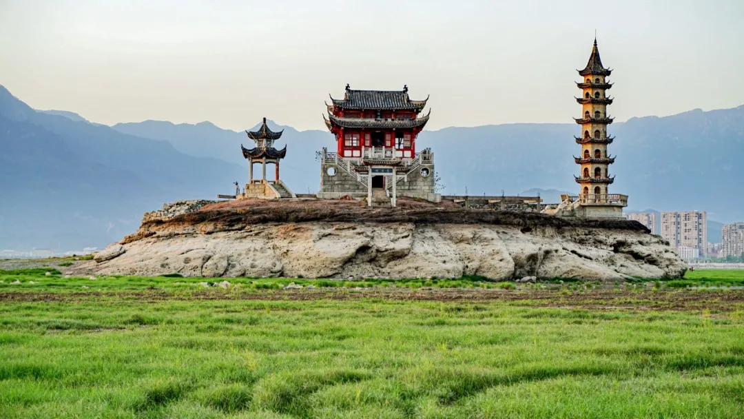 圖片|江西廬山市落星墩,每到枯水期,鄱陽湖水位下降,草灘浮現,這座千年石島就會露出全貌 · 攝圖網 ©