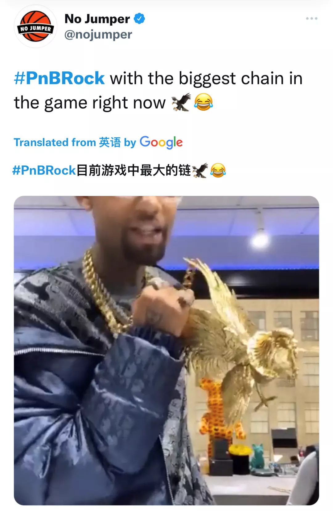 兩天前,美國黑人説唱歌手PnB Rock在社交平台上展示了自己的新項鍊——
