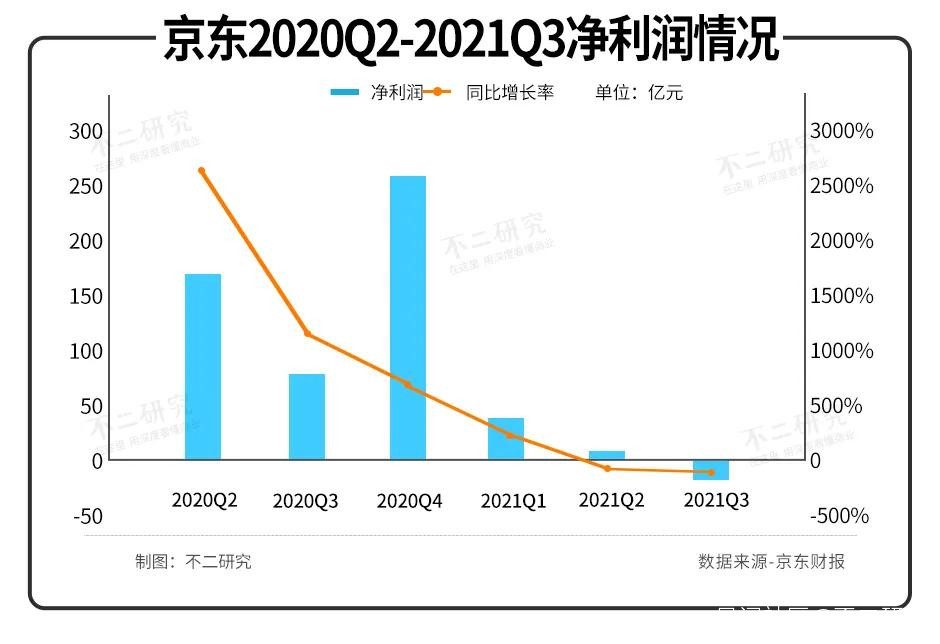 從淨利潤角度看,京東出現增收不增利的癥結。繼今年Q2京東淨利潤增速轉負後,Q3京東由盈轉虧。