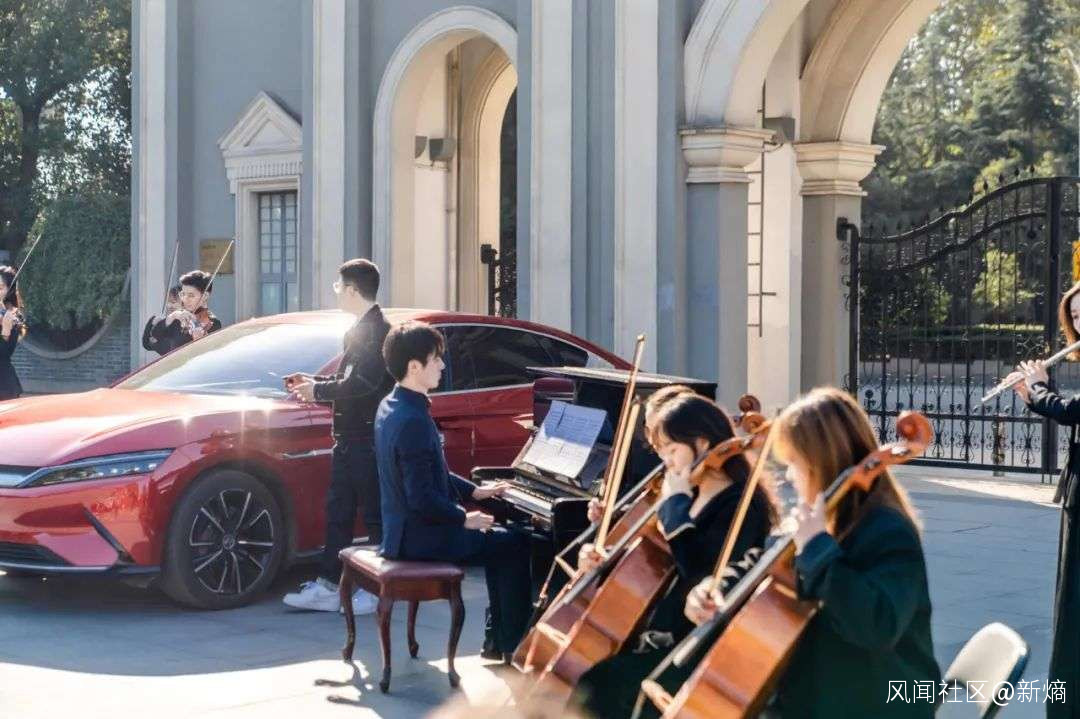 金燦的南京秋景下,洛可可樂團的交響樂演出《一步之遙》,開場指揮竟是由指揮家楊愷文的座駕,一輛紅色比亞迪漢來完成。