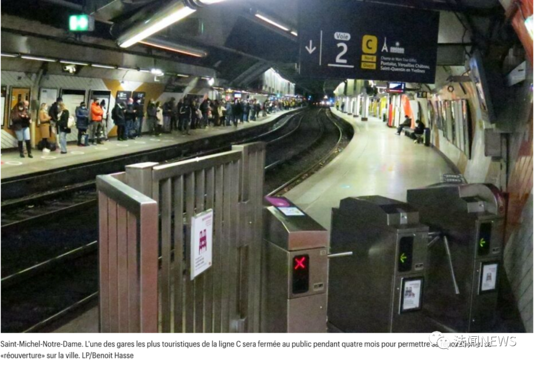 大巴黎地鐵RER C聖母院(Saint-Michel-Notre-Dame)站,將在2022年關閉,進行4個月的翻修。