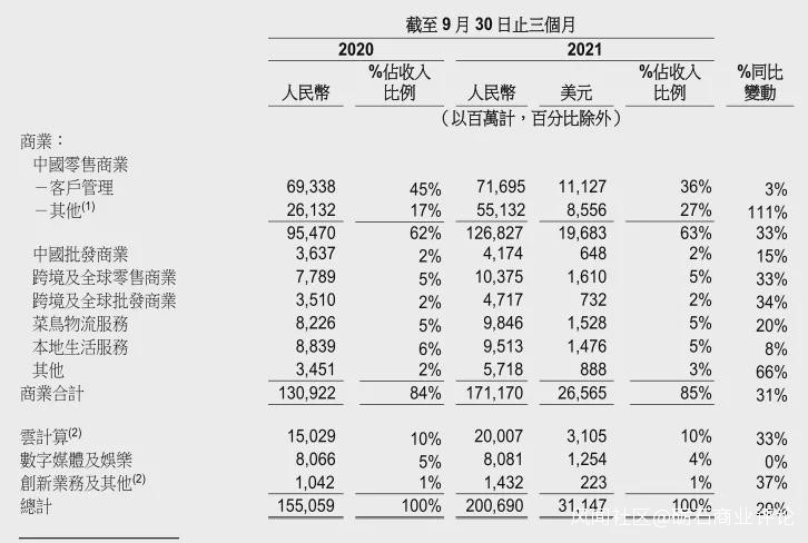 具體業務方面,最核心的中國零售商業共實現營業收入716.95億元,同比增長3%,較去年同期(20%)大幅下滑17個百分點,較上一季度(14%)下滑11個百分點。