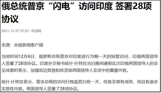 就突然在12月6日,閃電般訪問印度,並簽署了28項協議。