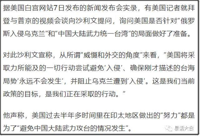 其實沙利文回答那個記者的提問,是典型的美國和媒體唱雙簧的套路,這樣的問題顯然是刻意挑選出來的,把“俄羅斯攻打烏克蘭”跟“我們武統”,進行了同時提問,似乎給人感覺這是會同時發生的一樣。