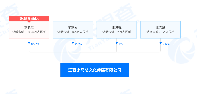 要説不同,可以肯定的是,小馬雲的父親——那個苦苦支撐一整個家庭的獨腿男人——名下注冊了兩家公司,一個叫“江西小馬總文化傳媒有限公司”,疑似實際控制人劉長江;另一個叫“小馬總(北京)商貿有限公司”,疑似實際控制人是劉長江長期的合作伙伴王進峯。