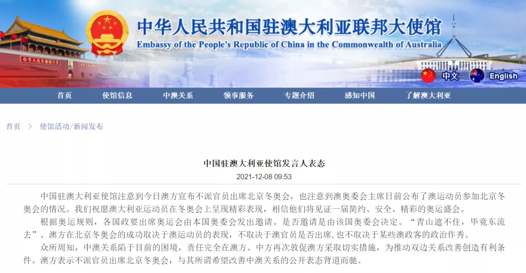 繼美國7日宣佈不派官員參加北京冬奧會後,澳大利亞也於8日跟進做出同樣宣佈。中國當然要進行外交回應,但是中國社會必須清楚,美澳這些連“外交抵制”都不敢公開標註的勾當對中國造成不了任何實質損害,在中美註定長達至少幾十年的博弈中,類似摩擦或將越來越多。但它們總體上屬於“嘴炮”範疇,對中美實力對比這一最關鍵指標不產生影響。