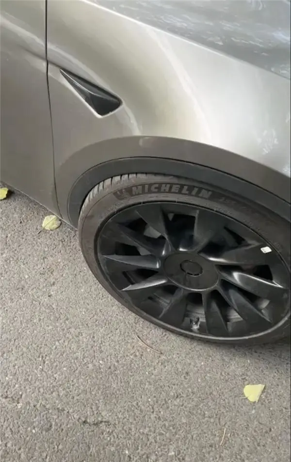 **當天,有Model Y車主還為此遭遇了驚心動魄的一幕。**他發佈的信息顯示,在一平坦的路上,他的Model Y正在進行側方停車時,突然傳來一聲巨響,車身緊跟着明顯下沉。原來,車輛的右前輪已經錯位,懸架支臂已經脱落,多根螺栓掉落在地上。