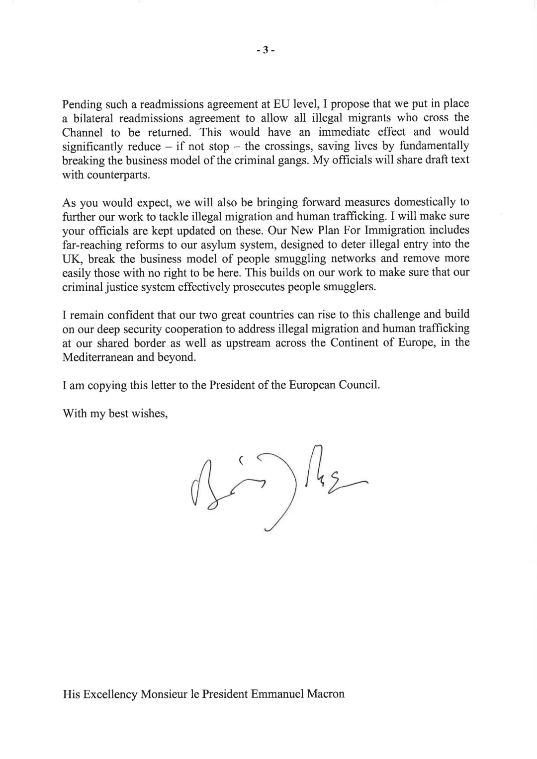 信上不僅充斥着“此事我早有預料”的自我標榜,還扔出了阻止偷渡的五大“建議”,口氣活像那個在羣面中爭當leader的優等生。此外,他還要求法國同意“收回”那些跨過海峽來到英國的難民。