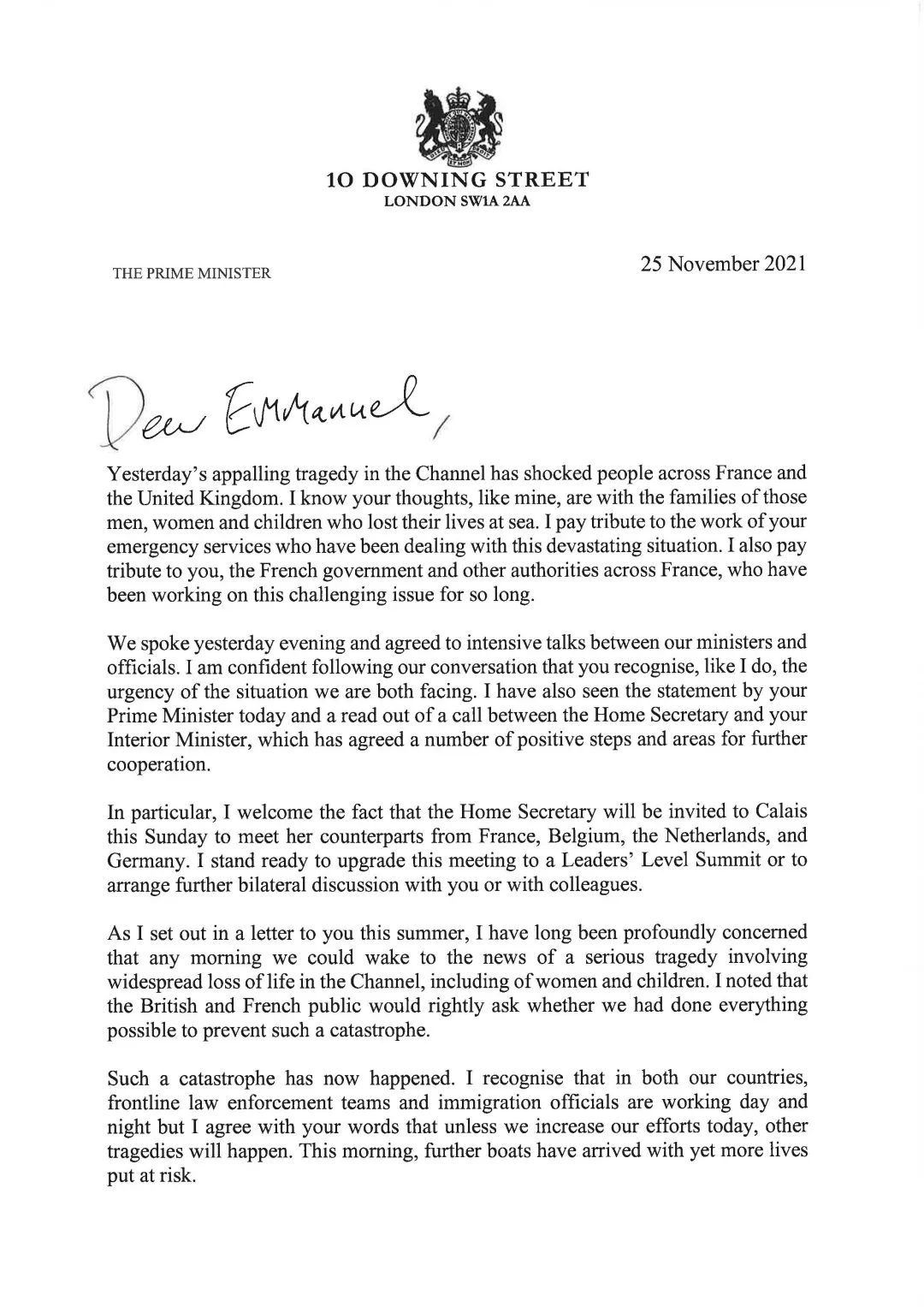 ● 約翰遜發在自己推特上的給馬克龍的署名信全文 / @BorisJohnson