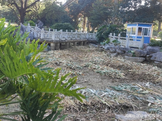 廣州原本存在的河流湖泊水量減少也很嚴重,比如下圖中某廣州市公園內水塘已完全乾涸。
