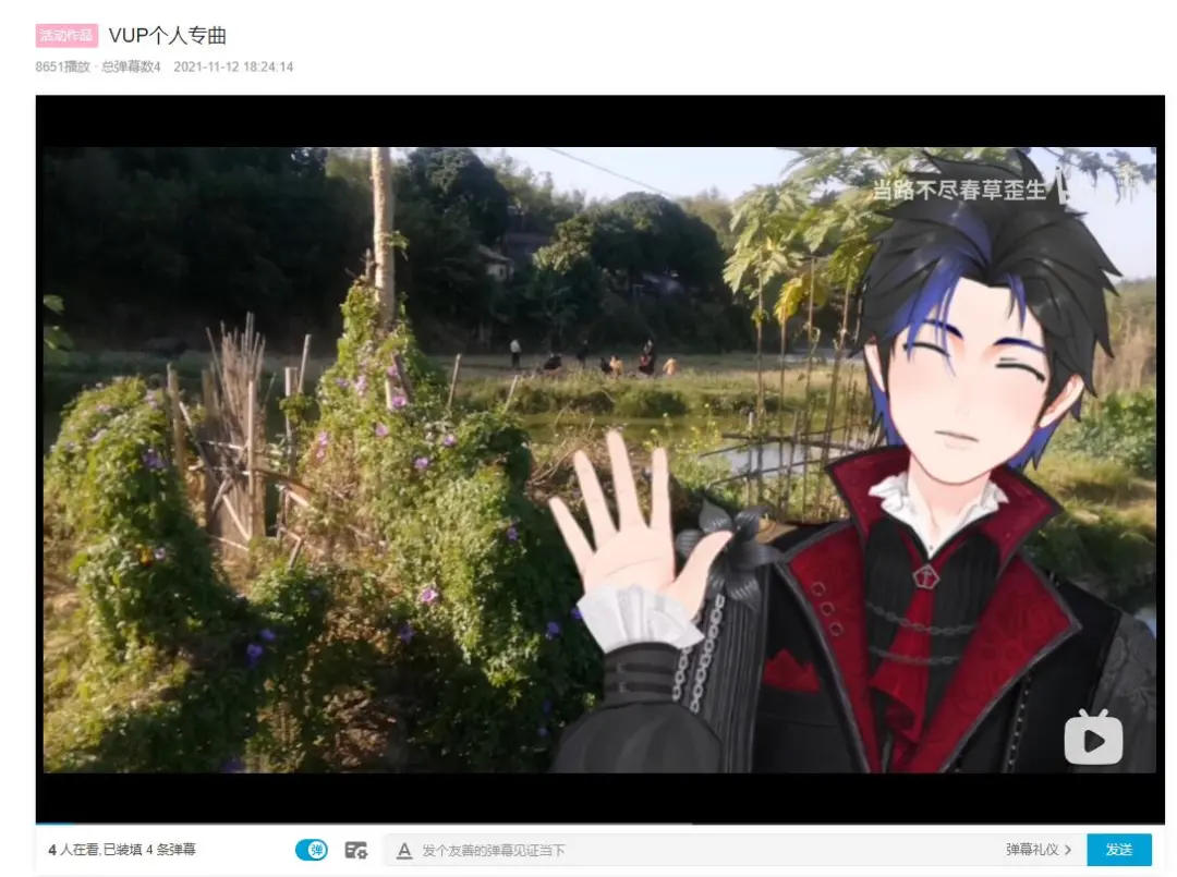 第一次聽説還是因為他在b站投了一個名為《VUP個人專曲》的視頻,這個視頻被轉到了一個vtuber粉絲羣,碰巧被我看到。