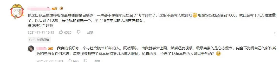 就我個人而言,我很希望有個人來教他如何適應這個平台。出獄之後的他已然恢復了公民的權利,那他想在B站分享生活,甚至以此獲利,又有何不可?