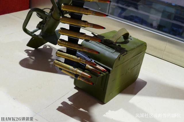機匣上方是鼓形受彈機蓋,內部是轉輪式結構,彈鏈在轉輪的上方移動,這樣與彈鏈解脱,提高供彈的可靠性。