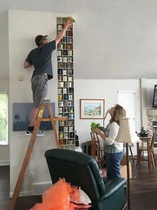 而現在,她的新男友為她建了一堵牆,專門展示杯子!