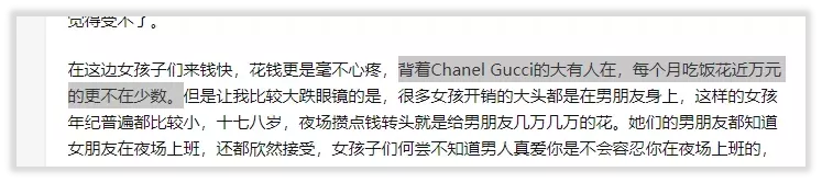 看完新聞,我專門去讀了不少“公主”寫的工作經歷,她們有的後悔,有的感慨,有的勸人別來做這個,有的説這行比你想得累,但在提到為什麼做這個時,幾乎每個人都提到的原因是**“來錢快”**。