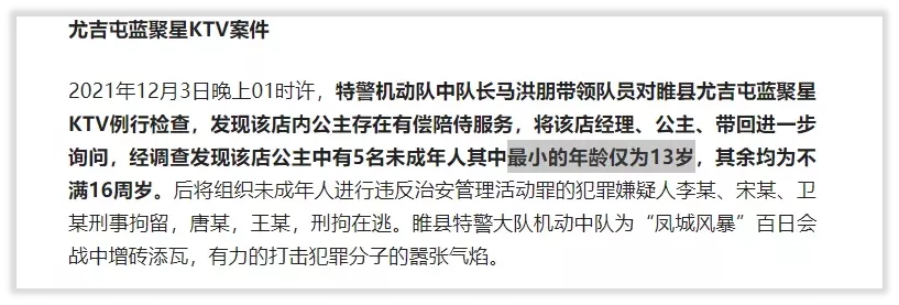可惜的是,翻翻新聞,會發現像這樣僱傭未滿16歲甚至未滿14歲少女去夜場工作的新聞並不少見。