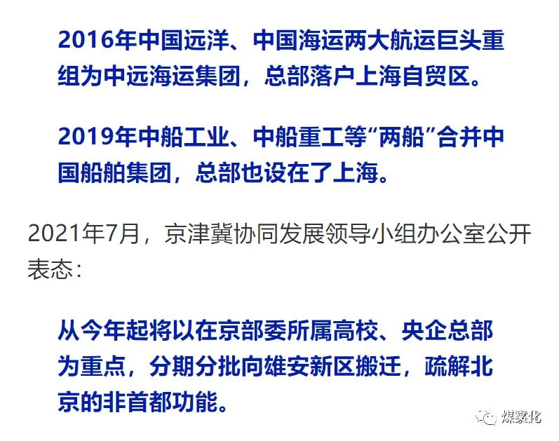 近期的新聞裏,央企離京潮也拉開大幕:中國華能落户雄安,支持新區發展;三峽集團回遷武漢,推動長江經濟帶的發展;中國核工業遷址上海,紮根長三角;還有消息稱,月底中國電子也將遷至深圳,深度融入大灣區的建設發展。