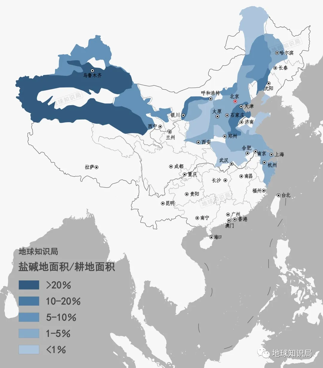 (全國鹽鹼地範圍示意)▼