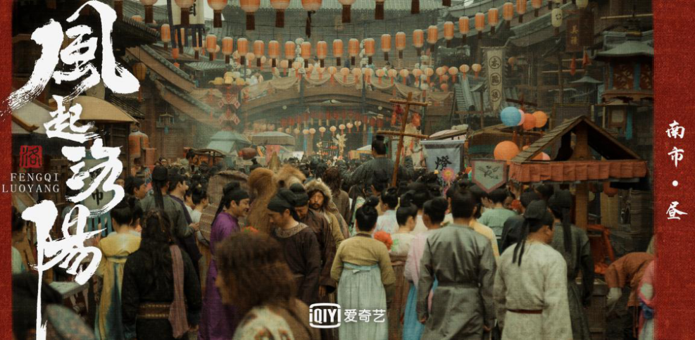 為了追求更好的視覺效果,為了還原洛陽盛世的風貌,《風起洛陽》採用大量的俯拍鏡頭。不得不説,這個操作很大膽,確實也反常規。但在謝澤那裏,有一套自洽的拍攝邏輯。通常俯拍會讓畫面很空,這時候就需要人山人海作為支撐,形成熱鬧的街市。