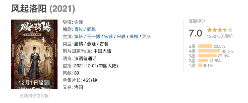 截止目前,《風起洛陽》豆瓣評分穩定在7分。作為愛奇藝洛陽IP啓動開發的第一部作品,謝澤調侃自己肩負着莫大的“打響頭一炮”的職責。“幸好,結果還是挺滿意的。” 當然,一千個觀眾就有一千個哈姆雷特,關於劇中的演員選角、部分劇情爭議等等,謝澤在採訪中也沒有迴避。同樣,我們還好奇這部劇到底花了多少錢?拍了多久?以及導演眼中,《風起洛陽》起的究竟是什麼風?(PS:看到最後,會有一個意想不到的答案給到。)