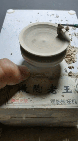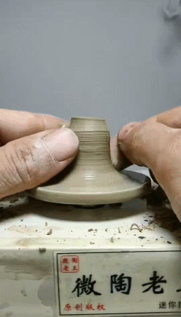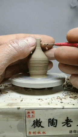 而微陶只能用指腹,而且泥坯實在太太太小,加上高速轉動的拉坯機,可以説難度成百倍的增加。