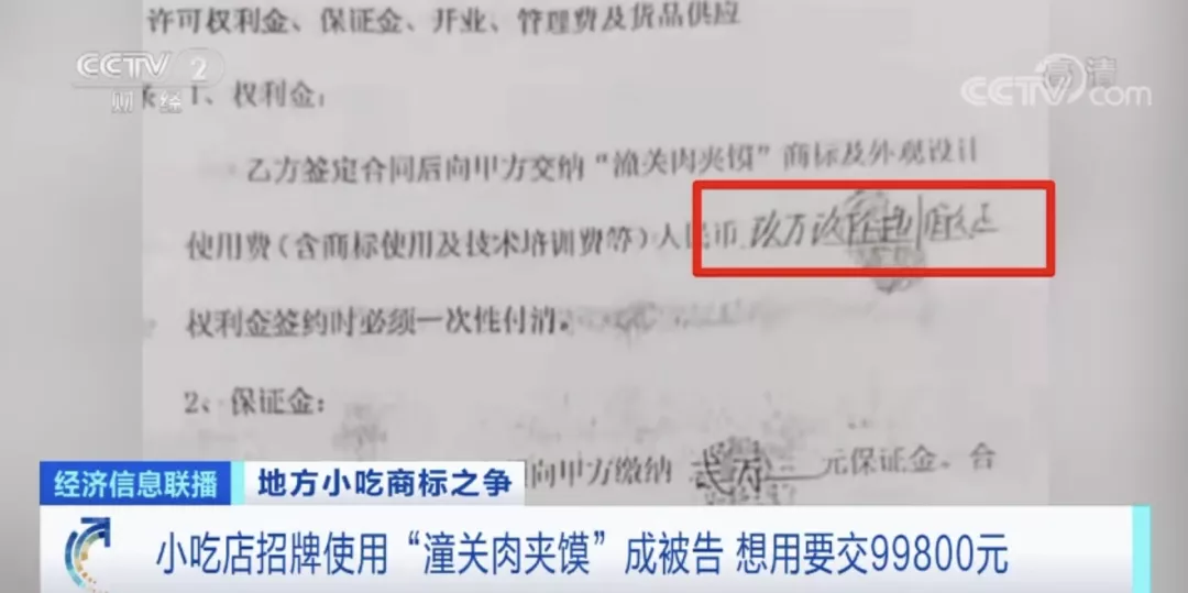 陝西“潼關肉夾饃協會”起訴全國幾百家賣潼關肉夾饃的小吃店,要求商户們賠償協會損失3-5萬元,如果想繼續用“潼關肉夾饃”商標,得向這個協會繳納99800元。
