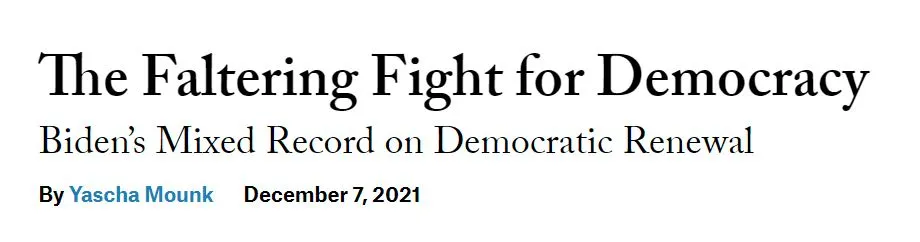 美國《外交政策》的文章標題為《拜登的民主峯會缺了什麼?》,副標題自問自答:缺少了真正來自人民的力量。