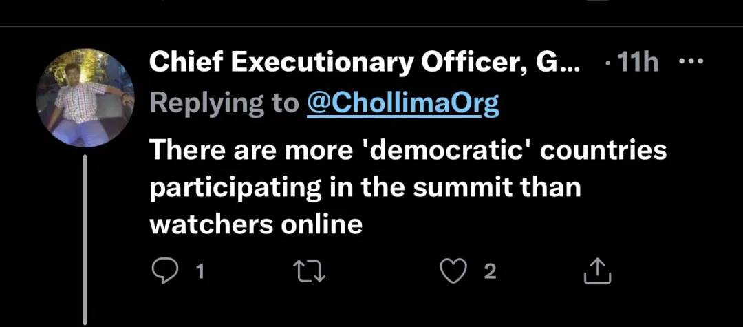 也難怪有網友嘲諷説:恐怕參加峯會的“民主”國家數量都比看直播的網友多。