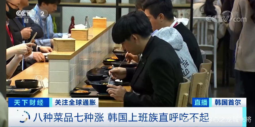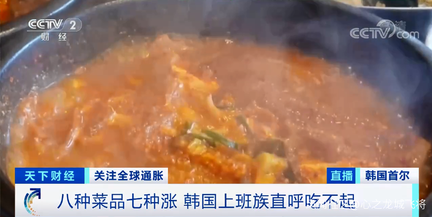 與此同時,民眾外出就餐的支出負擔也在不斷增加。11月,韓國的餐飲價格漲幅達到十年來最大,相比去年上漲近4%,已超出韓國食品、能源等消費者物價的整體漲幅。具體來看,韓國的八種代表性餐飲菜品中,除了參雞湯之外,泡菜湯、冷麪和拌飯等其餘七種產品的價格全部上漲。其中,很多上班族最愛的泡菜湯,市面上的均價已經超過了7000韓元,約合人民幣38元 ,高出上班族午餐的平均花銷,讓不少人直呼吃不起。