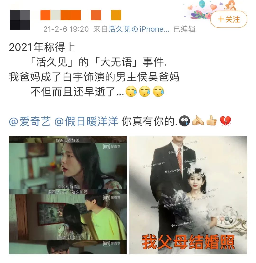 今年2月6日,某用户發佈微博稱,《假日暖洋洋》劇組未經授權,擅自使用其父母結婚照,“我爸媽成了白宇飾演的男主侯昊爸媽……而且還早逝了”。劇組兩次致歉,並開除了涉事員工。