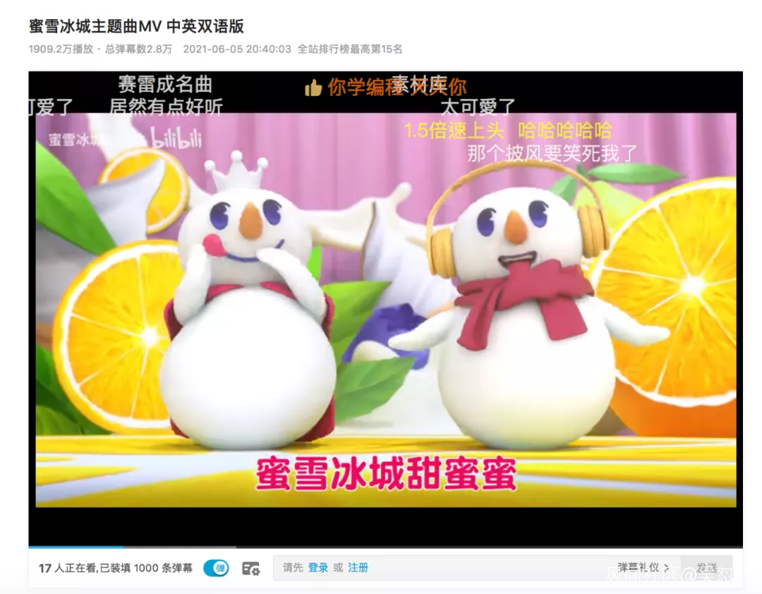 「雪王」的刷屏不止於此,今年暑期的B站,甚至出現了只要用户發佈內容與蜜雪冰城掛鈎,都能輕鬆突破十萬播放的盛況。