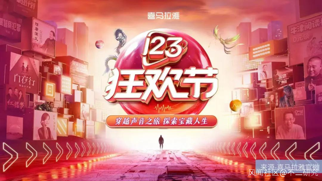12月3日,喜馬拉雅第六屆123狂歡節如約而至;與往屆狂歡節不同,其推出劇情式晚會“喜馬拉雅之夜·2021幻音之旅”,在喜馬拉雅、咪咕、鬥魚、北上廣深四地部分影院同步播出。