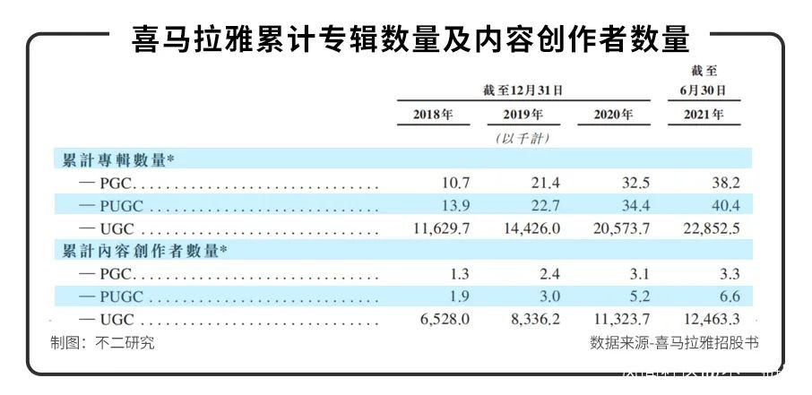 從用户收聽時長來看,PGC和PUGC顯然更具吸引力;但從內容採購成本,金字塔頂端的PGC成本最高,PUGC次之。在招股書中,喜馬拉雅已經明確了內容路徑選擇:重點押注PGC和PUGC。「不二研究」發現,其形容PGC使用的詞彙是:strategic focus,即:戰略性聚焦;對於PUGC則是unique;UGC僅是well-established。