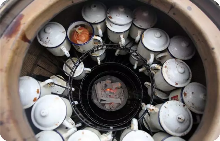 ▲安徽壽縣、蚌埠一代的美食。鐵皮箱裏是一個個搪瓷杯,蜜黃色的液體裏頭泡着一個去了核的雪梨,中間掏空,加上紅棗、桂圓。