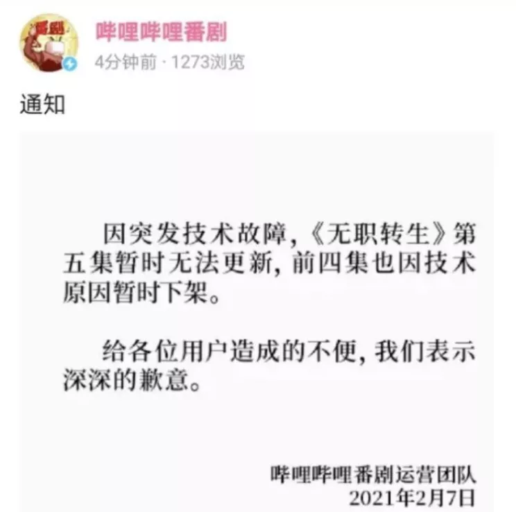 《 無職轉生 》的下架,對代理商造成了非常大的損失,因為他們一分錢分成都拿不到了,更別提 B 站本身花出去簽約的錢了。