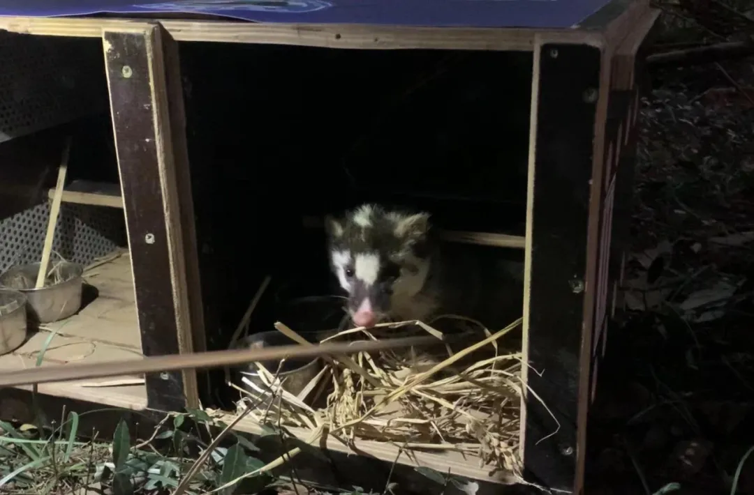 那我們肯定還是先放鼬獾,主要這個快,選好放歸地點燈光攝像各部門準備好之後,帶着電動車頭盔的凌輝看起來很搖滾地打開了運輸箱的門,大家屏住呼吸,假裝等待着並不會立刻出來的鼬獾。