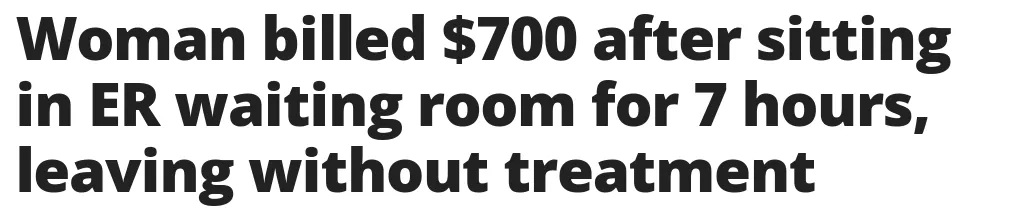 前不久,類似的大無語事件又發生了:一名佐治亞州的女子在醫院急診室排隊7小時,未等到任何治療,回家後卻收到700美元的就診賬單!