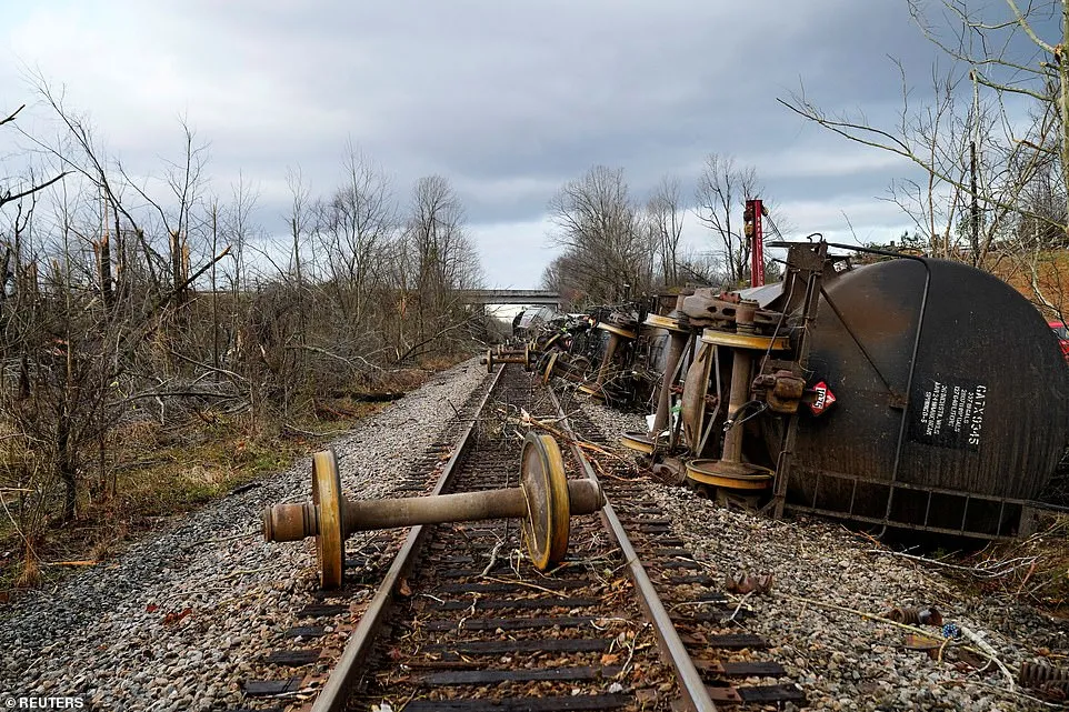 肯塔基州一名警長桑德森告訴 WKYT-TV 説:“今天早上有一列火車被風吹翻了……所以我們正試圖評估我們在那列火車上裝的是什麼類型的貨物。”