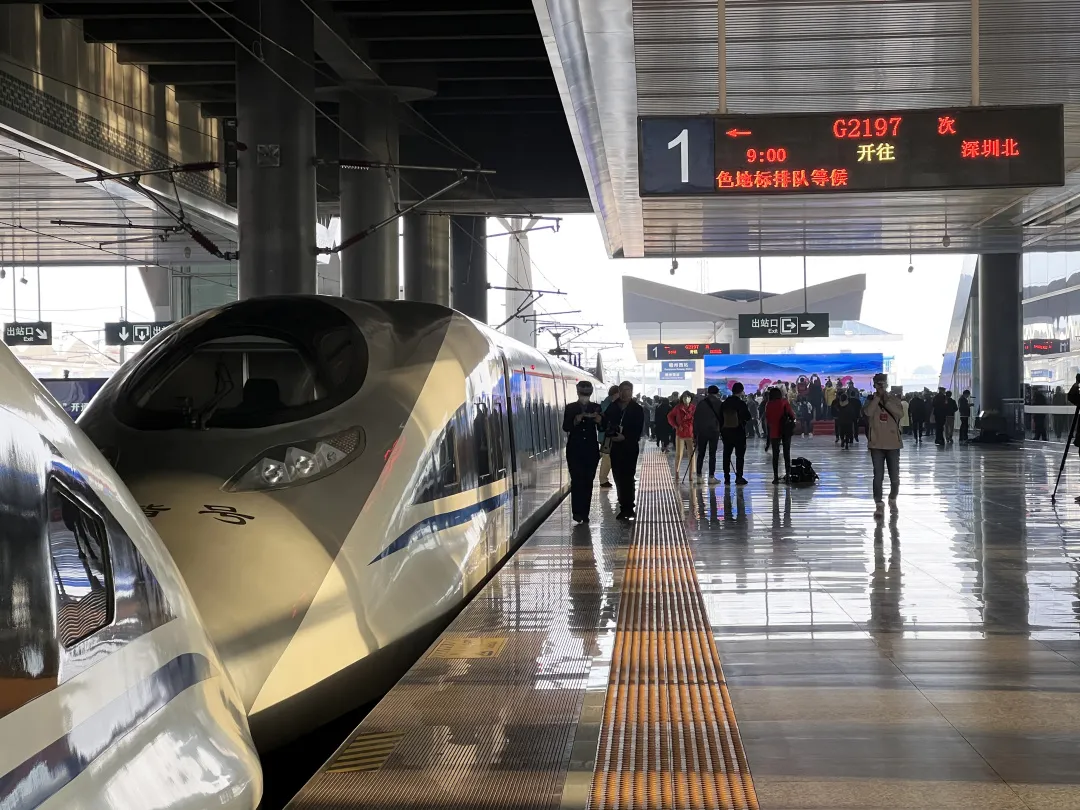 2021年12月10日9時整,G2197次和G4640次列車分別從贛州西站和深圳北站開出。