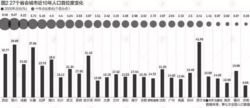 對於那些人口稀少的省份,比如西藏,青海,寧夏,全省才幾百萬人,省會人口占到百分之三四十還相對好一點。