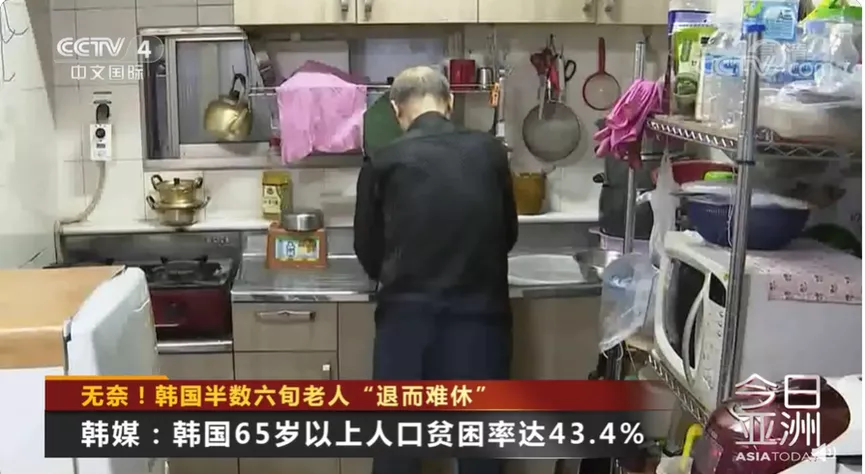 而根據經合組織的統計,韓國65歲以上老人還在繼續工作的比例高達34.1%,位居經合組織國家的第一位,而65歲以上老人的貧困率也高達43.4%。