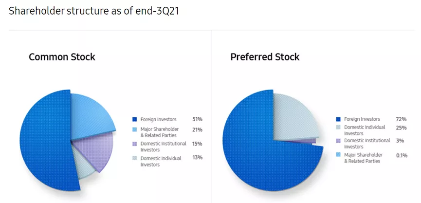 下圖是我從三星電子的官網截取的截止到2021年第三季度末的股權情況,