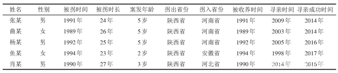 需要説明的是,本研究無意探討有關統計學意義上的總體性推論,而是通過“過程—事件”的邏輯順序,突出被拐兒童在經歷“被拐”等一系列重大生命事件後生命歷程軌跡的變化,從而呈現這些生命事件對於其生命歷程變化的影響,進而探究被拐兒童在尋親成功後與原生家庭的融入狀態,以及“被拐”等一系列生命事件與其原生家庭融入的關係,希望能夠引起相關學者、公眾或部門的關注。