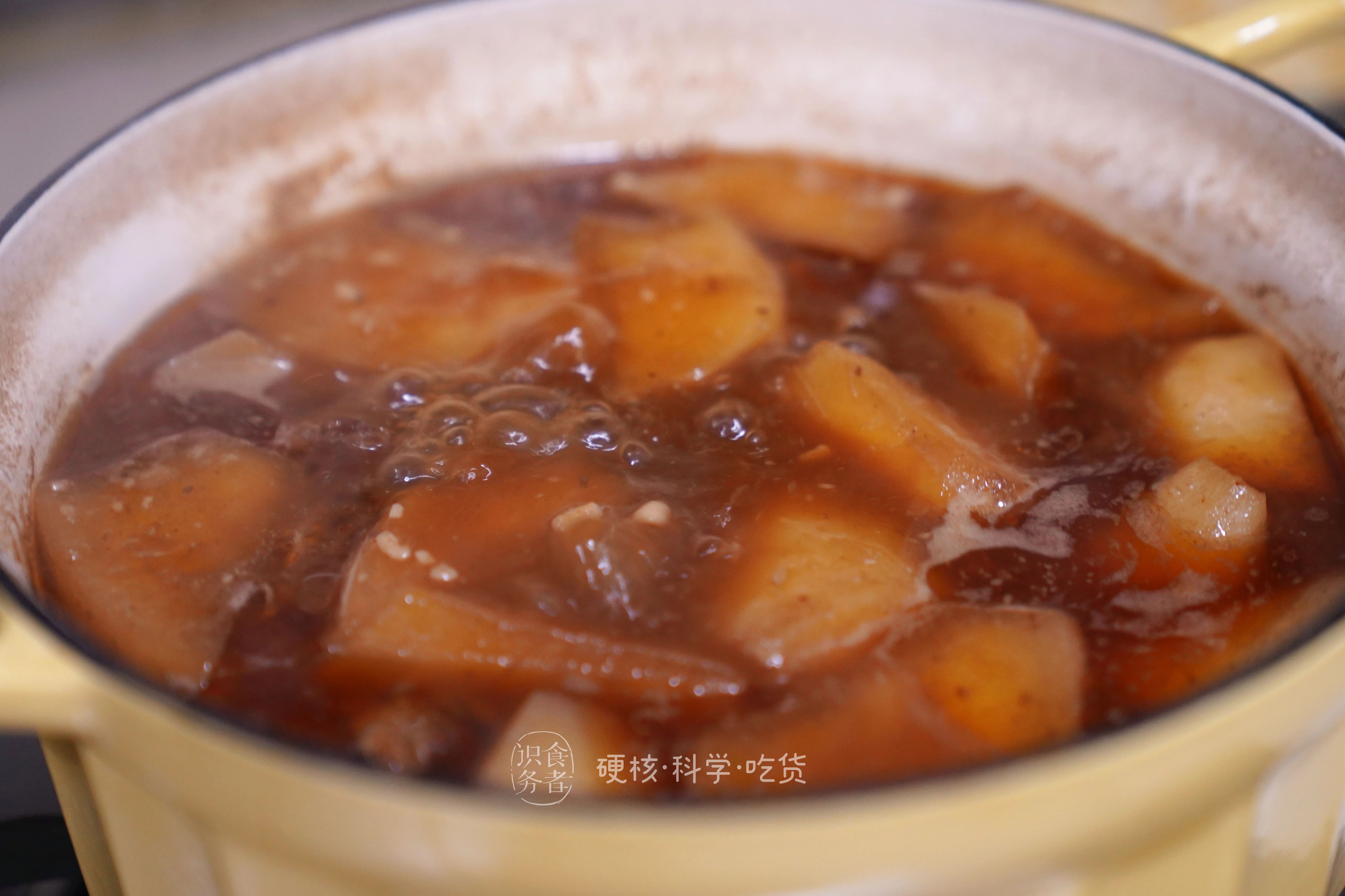 倒入鍋內,注入靈魂,中小火慢煨30分鐘至蘿蔔煮透成渾然一體的琥珀色。