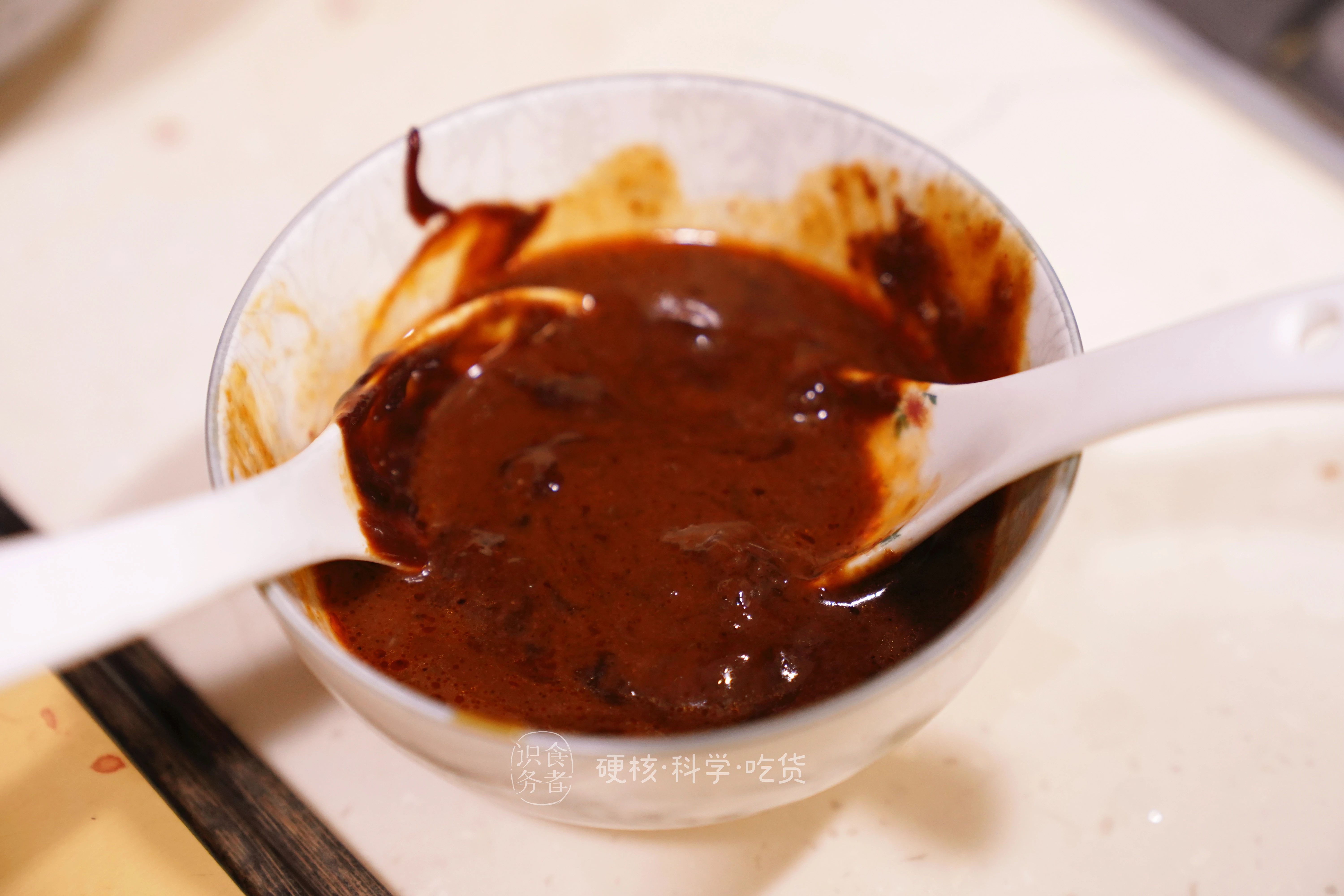 同時,準備柱候醬,用1勺沙茶、1勺柱候醬、5g蠔油,5g糖,5g鹽充分拌勻。